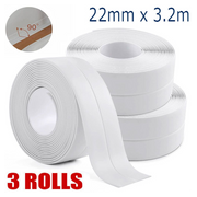 3PCS Bath Kitchen Caulk Tape Sealant Strip PVC Self Adhesive Toilet Wall Sealing Tape