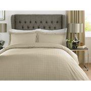 400TC - 100% Cotton Satin Stripe Check Duvet Set Latte