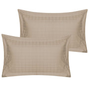 400TC - 100% Cotton Satin Stripe Check Pillowcase Pair Latte