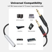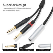 6.35mm 1/4 TRS Stereo Female to Dual Male Y-type Audio Cable, 6.35mm F to 2 x M