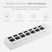 7 Ports USB Hub 2.0 USB Splitter High Speed 480Mbps with ON/OFF Switch / 7 LEDs, 7 Ports (White), 7 Ports (Black)