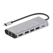79591 6 in 1 8 Pin to RJ45 + HDMI + 8 Pin Charging + 3 USB 2.0 Ports Multifunctional HUB Converter Docking Station, 79591