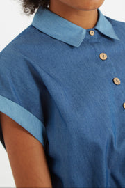 Addie our 50's inspired playsuit is back now crafted in two colours of lightweight denim. Double denim was never his right! Featuring cuffed sleeves an elasticated waist, a self tie and pockets. Just add your favourite cross body bag and some trainers for that laid back summer vibe.
