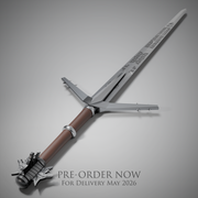 Featuring the iconic angled spiked quillons, a monstrous blade profile, and the striking quadruple wolf head pommel. The authentic engraved runes on the face of the blade are taken from in-game artwork showing the power of the magic in the sword. The leather-wrapped handle, gives ultimate control, while the balance between the blade and the pommel makes it an extraordinary replica to hold and wield.