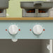 ● Large storage spaces like shelves and cabinets hold cooking toys