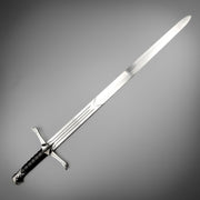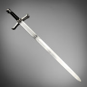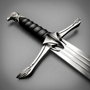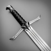 This is an arming sword, a knightly sword, the sword that is drawn in emergencies when subtlety has failed and armed combat is the only option. Heavy enough to parry a guard's blade, light enough to be moved with ease. The swooping eagle quillons or crossguards have been made aggressive and angular, simulating a hunting bird of prey. The signature reversed "V" on the blade below the triple fullers is meticulously hand-ground on each sword that passes through our doors. When you hold this sword, you'll know you're holding the legendary sword of Altaïr.