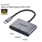 amalink 9175D Type-C / USB-C to HDMI + USB 3.0 + PD HUB Adapter, 9175D