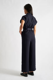 Angie Sustainable Satin Back Crepe Jumpsuit - Navy