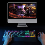 AULA F2088 108 Keys Mixed Light Mechanical Blue Switch Wired USB Gaming Keyboard with Metal Button, Blue Switch Black