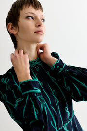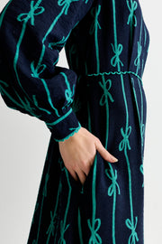 Avon Tie Up High Neck Long Sleeve Midi Dress – Navy