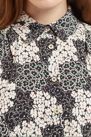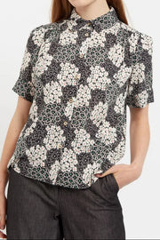 Barclay Flower Patch Print Short Sleeve Blouse in Black & White