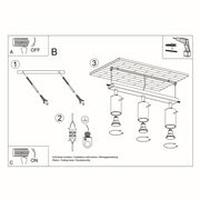 Modern Steel Ring Ceiling Lamp with Adjustable GU10 Spotlights" Description: Elevate your space with our modern steel ring ceiling lamp. Designed with style and versatility in mind, this lamp allows you to create unique arrangements that perfectly match your aesthetic. The ceiling-mounted bracket features elegant fixtures with several directional lights, giving you the freedom to adjust each light source individually. Illuminate specific areas of the room and set the perfect mood for any occasion. Product Highlights: - Sleek and contemporary design - Adjustable spotlights for customized lighting - Illuminate specific areas or create a stunning ambiance - Perfect for lovers of original style and modern interior accents Additonal Attributes: - High-quality steel construction for durability and longevity - GU10 socket compatibility for easy bulb replacement - Ideal for residential and commercial spaces - Easy to install and maintain
