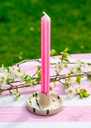 Handmade ceramic taper candle holders with tray to catch the drippy drips! Easy to clean and dishwasher friendly. Candle NOT included. By Charlotte Manser Ceramics for LORDS.