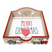 Christmas House Napkin Holder 18cm - Wooden Holder with Metal Arm & 'Merry Christmas' Message Painted - D19.5 x H7 x W18.5cm
