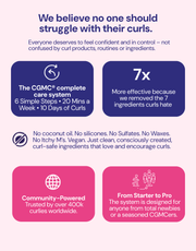No Coconut Oil • No Sulphates • No Silicones • No Drying Alcohols • No Waxes • No Itchy M’s • No Parabens — for cleaner, softer, longer-lasting curls without dryness or frizz.