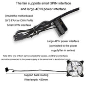 10. The fan supports small 3PIN interface and large 4PIN power interface, pay attention! Only one of them can be selected for access, and the two interfaces cannot be connected to the power supply at the same time to avoid short circuit