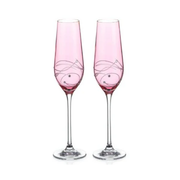 Diamante Pink Champagne Flutes with Spiral Design Cutting - Set of 2 - In Gift Box