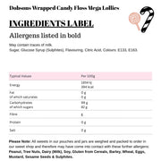 The perfect novelty flavour to transport you to the funfair! The Dobsons Wrapped Candy Floss Mega Lollies are the perfect sweet. Candy Floss flavoured with a pretty pink and blue appearance. Individually wrapped.