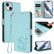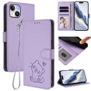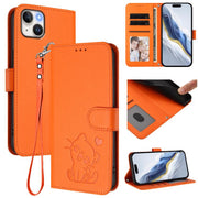 Embossed Heart Cat Leather Phone Case with Hand Strap, For iPhone 14 / 13, For iPhone 14 Pro
