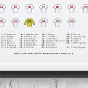 Celebrate England's incredible Euro 2020 run to the final with this high quality squad print. Led by Gareth Southgate and with stars such as Harry Kane, Luke Shaw, Raheem Sterling and Harry Maguire, England reached their first major final for 55 years. This high quality print is the perfect gift for any Three Lions fan.