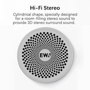 5. Cylindrical shape and metal horns offer 360° Hi-Fi stereo.