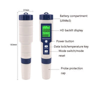 EZ-9909 PH/Salinity/Temperature/TDS/EC 5-in-1 Test Pen Multifunctional Water Quality Detector, 5-in-1 Test Pen