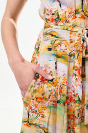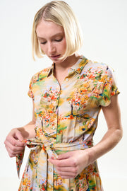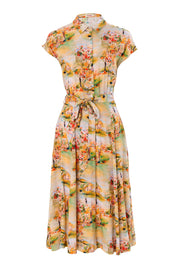 Fleur Oriental Landscape Print Midi Shirtdress - Yellow