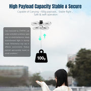 3. Max Load and Battery Life: With a maximum payload capacity of approximately 100g, the device features a built-in 100mAh battery that charges fully in just 1 hour. Once charged, it supports around 400 uses on a single charge.