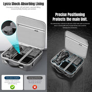 2. Made of high-quality PU fabric, the outer shell is pressure-resistant, wear-resistant, and splash-proof. The internal Lycra double-layer fabric and shock-absorbing lining precisely fit the body and accessories, effectively fix, prevent collision and friction, and are not afraid of extrusion, ensuring that your Mavic 4 Pro and related accessories are provided with lasting protection during transportation or storage;