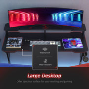 Gaming PC Desk: Ergonomic, Space-Saving, Headphone Hook, Curved Front