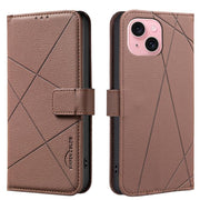 Geometric Pattern RFID Leather Phone Case, For iPhone 15, For iPhone 13 / 14, For iPhone 14 Pro, For iPhone 14 Pro Max