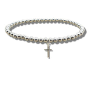 Premium Girls Mini Cross Silver Beaded Bracelet