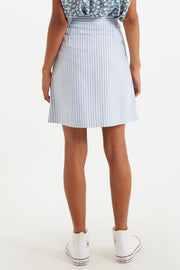 Hela Sail Stripe Button Through A-Line Mini Skirt Blue