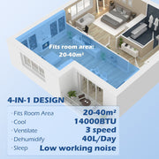 HOMCOM 14,000 BTU Portable AC - 240m², Dehumidifier, Timer