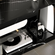 HOMCOM Marble Effect TV Stand Cabinet with Glass Shelf for 55 Inch TVs
