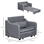 HOMCOM Pull Out Sofa Bed, Fabric 2 Seater Sofa Couch for Living Room, Grey