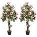 HOMCOM Set of 2 Decorative Artificial Plants Rose Trees in Pot, Pink