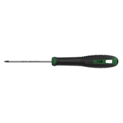Torx® screwdriver for professional use, developed together with craftsmen. Ergonomic design for optimal comfort. The long rubber-coated handle ensures grip for precision and maximal transmission of power. The handle is made from durable PPC plastic with a coating of age-resistant and easy-to-grip rubber. The permanent marking of type and size on the top as well as the handle’s colour make it easy for the user to select the right screwdriver. The blade is manufactured from high-quality hardened steel for long life. The screwdriver’s handle has a hole for hanging or securing. The handle’s design prevents the screwdriver from rolling on inclined surfaces.