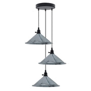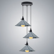 Industrial 3 Head Cluster Pendant Light - Adjustable Cord, E27 Base, Metal Fitting - Cone Shaped - Vintage Style