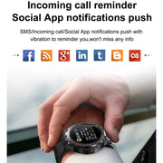 9. Functions: heart rate detection, blood pressure detection, blood oxygen detection, Bluetooth call, Bluetooth music, pedometer, calories, distance, stopwatch, multi-sports mode, female menstrual cycle reminder, incoming call notification, message reminder, alarm clock reminder, remote camera, sedentary reminder to wait