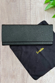 Glasses come with a stylish collapsible case which takes hardly any room in your handbag plus glass cleaner cloth.