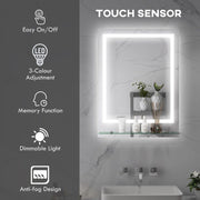 kleankin Dimmable Bathroom Mirror with LED Lights, 3 Colours, Defogging Film