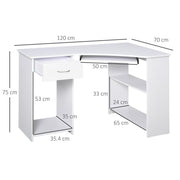 L-Shaped Corner Computer Desk w/ 2 Shelves Worktop Keyboard Tray White