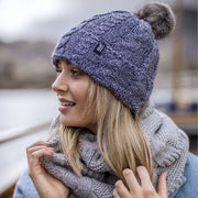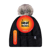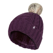 Ladies Cable Knit Fleece Lined Thermal Winter Bobble Hat with Pom Pom