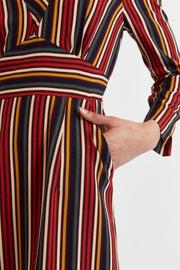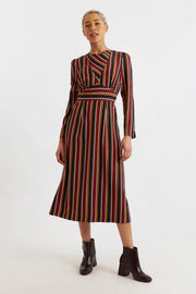 The Lua Winter Stripe long sleeve midi dress is a timeless piece, designed to take you effortlessly from autumn into winter. Crafted in a striking multicoloured stripe. With a slim silhouette, an elasticated waist to flatter and side seam pockets, this dress seizes the perfect balance between elegance and practicality. Perfect for any occasion.