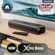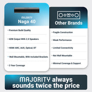 Experience immersive, high-quality sound like never before with the Majority Naga 40 2.1 Bluetooth Soundbar. Designed to elevate your home entertainment setup, this sleek and powerful soundbar delivers rich, dynamic audio that brings movies, music, and games to life. Whether you're watching your favourite film or streaming your go-to playlist, the Naga 40 ensures every detail is crisp and clear.