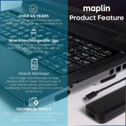 Maplin 100W USB-C Laptop Charger Power Supply with 1x USB-A 2.4A PD Port