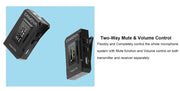 Flexibly and completely control the whole microphone system with mute function and volume control on both transmitter and receiver separately.