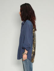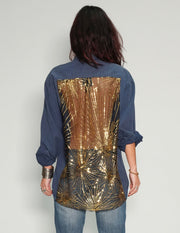 Party Back Shirt - Gold Sequin - Blue Cotton