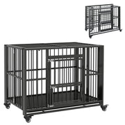PawHut 43" Foldable Heavy Duty Dog Crate - Locks, Removable Tray, and Wheels" Description: Provide a secure and comfortable space for your beloved pet with the spacious PawHut 43" Foldable Heavy Duty Dog Crate. With its thoughtful design and premium features, this dog crate is the perfect solution for keeping your furry friend safe and happy. The large door with an additional small door for feeding allows for easy access, ensuring convenience in caring for your pet. Plus, the openable top provides a seamless way to interact with your pet, making feeding and playtime a joyful experience. Thanks to the universal wheels, this dog crate offers effortless mobility, allowing you to move it around your home with ease. Whether you need to reposition the crate or simply want to provide your pet with a change of scenery, the wheels ensure smooth and hassle-free movement. Cleaning up after your pet has never been easier. The removable tray makes cleaning a breeze, ensuring that your pet's living area stays fresh and hygienic. No more struggling with messy accidents or unpleasant odors - simply remove the tray, clean it, and place it back, and your pet's space will be as good as new. When it comes to storage, this dog crate excels. Its foldable design allows you to effortlessly collapse it, saving valuable space when not in use. Whether you need to store it away or take it with you on your travels, the simple folding mechanism makes it a breeze to handle and store. Upgrade your pet's comfort in style with the PawHut 43" Foldable Heavy Duty Dog Crate. With its easy storage and maintenance, durable construction, and convenient features, this dog crate is the ideal choice for any pet owner. Features: - Large door with small door for easy access and feeding - Openable top for seamless pet interaction - Universal wheels for effortless mobility - Removable tray for fuss-free cleaning - Foldable design for space-saving storage